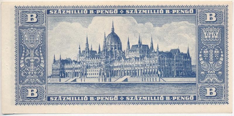 Leírás: 1946. 100.000.000BP erősen jobbra tolódott hátlapi nyomat T:I