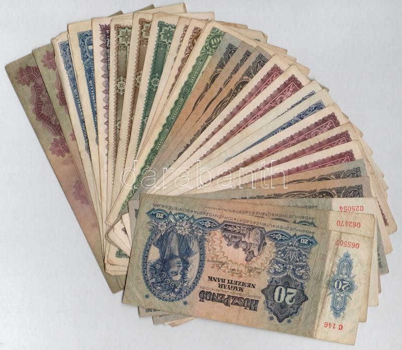 Leírás: 30db-os vegyes magyar pengő bankjegy tétel T:III,III-