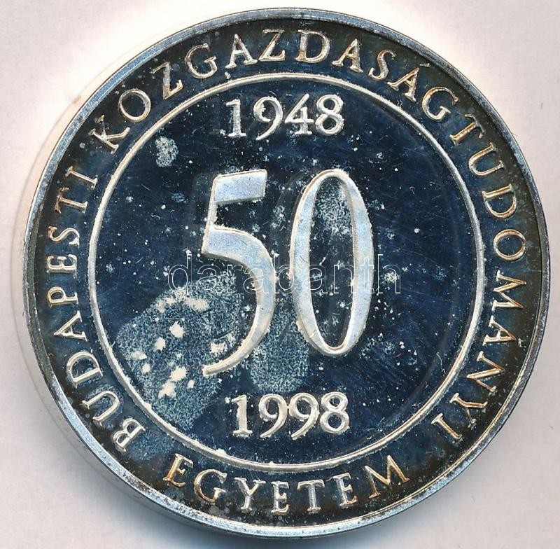 Leírás: 1998. "50 éves Budapesti Közgazdaságtudományi Egyetem 1948-1998" fém emlékérem tokban (42,5mm) T:PP fo., ujjlenyomat, patina