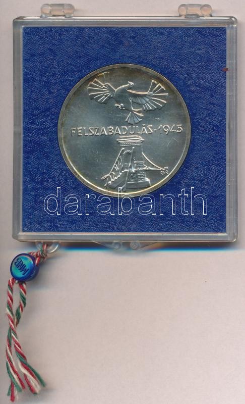 Leírás: 1975. 200Ft Ag "Felszabadulás" eredeti, plombált, sérült MNB plasztiktokban T:BU peremén patina