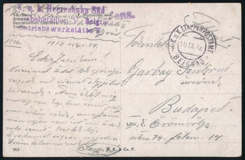 Leírás: 1918 Tábori képeslap Belgrádból Garbay Sándornak, később a Magyar Tanácsköztársaság államfőjének aláírásával