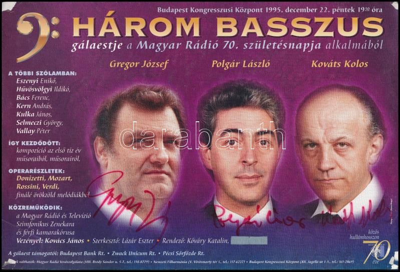 1995 Gregor József, Polgár László és Kovács Kolos aláírása gálaest műs... https://www.darabanth.com/hu/294-Gyorsarveres/294.0/Festmeny-mutargy-papirregiseg-egyeb/Alairas~200018/1995-Gregor-Jozsef-Polgar-Laszlo-es-Kovacs-Kolos-alairasa-galaest-musorlapjan-es-plakC3~II1557429