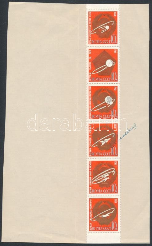 Adrijan Nyikolajev (1929-2004) szovjet űrhajós aláírásai szovjet bélyegsoron /