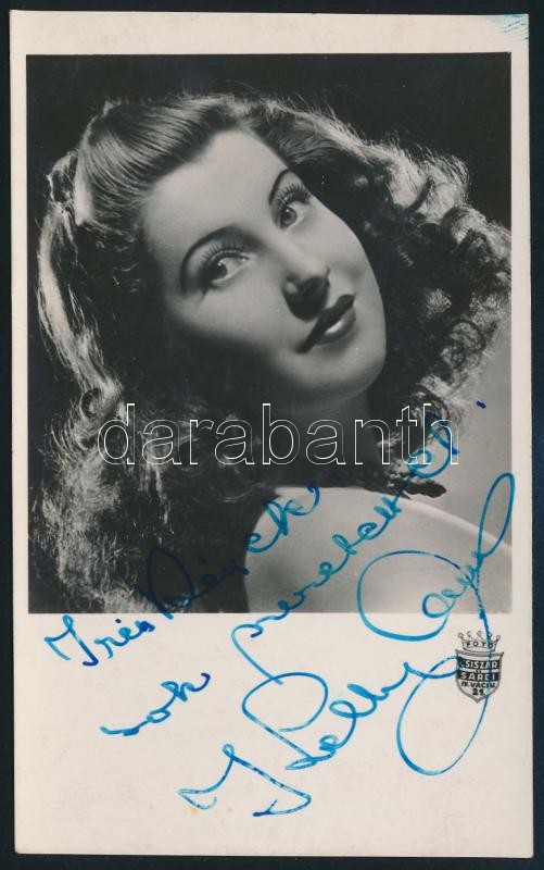 Leírás: Kelly Anna (1919-1965) énekesnő aláírása az őt ábrázoló fotólapon