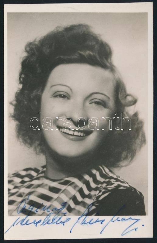 Leírás: Kiss Manyi (1911-1971) színésznő aláírása őt ábrázoló fotólapon