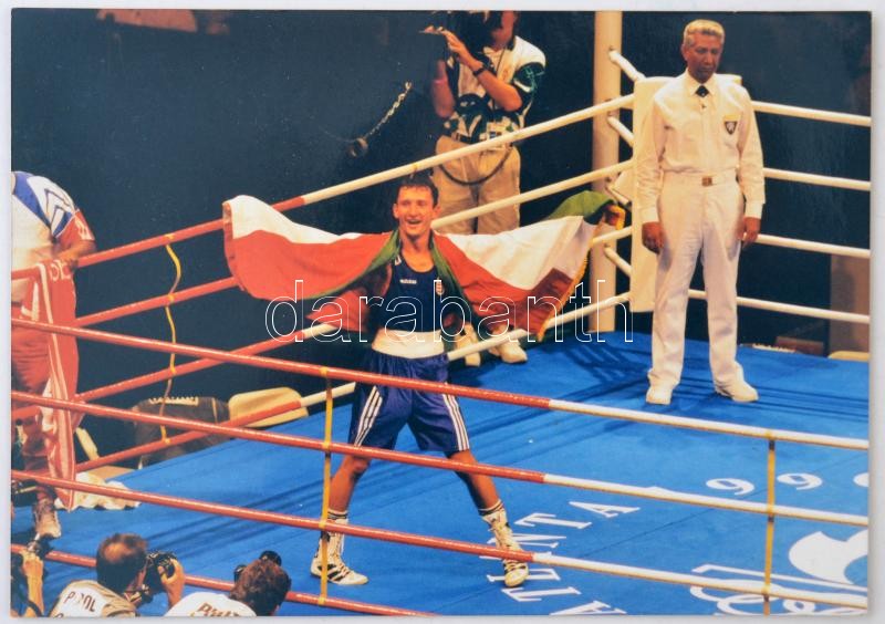 Leírás: Kovács István Koko(1970-) ökölvívó aláírása az őt ábrázoló fotón