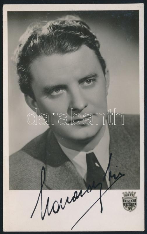 Leírás: Udvardy Tibor (1914-1981) színész aláírása őt ábrázoló fotólapon