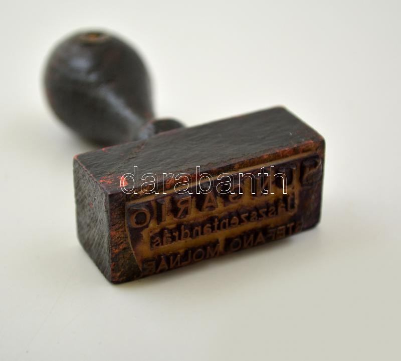 Leírás: Eszperantó pecsétnyomó, fa nyéllel, h: 7 cm