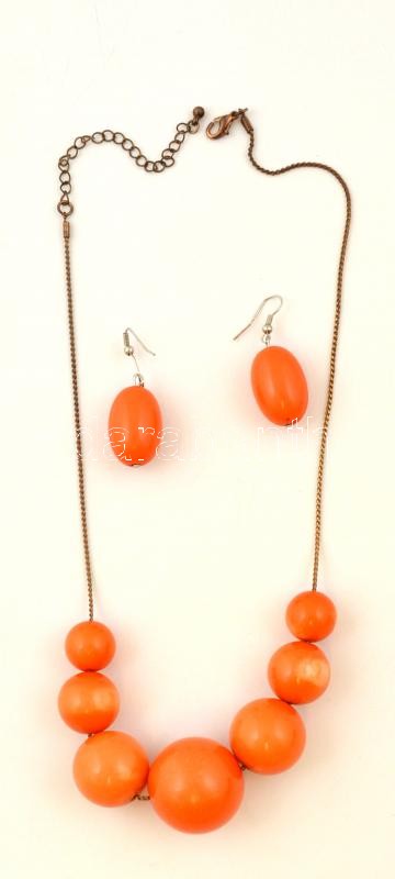 Leírás: Narancsszínű retró nyaklánc, h: 56 cm + fülbevalók