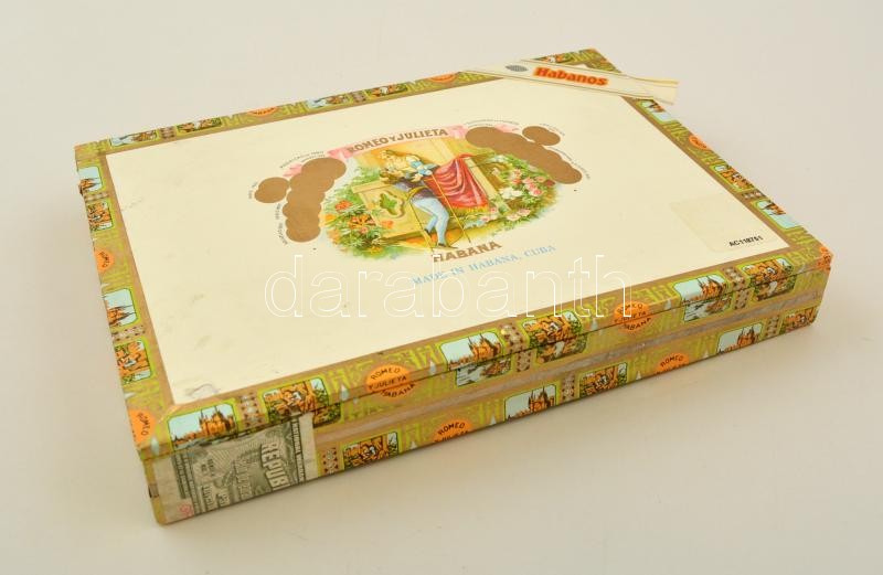 Romeo y Julieta szivaros doboz, 22,5×16,5×3 cm https://www.darabanth.com/hu/294-Gyorsarveres/294.0/Festmeny-mutargy-papirregiseg-egyeb/Bolhapiac~200011/Romeo-y-Julieta-szivaros-doboz-22-5C39716-5C3973-cm~II1563096