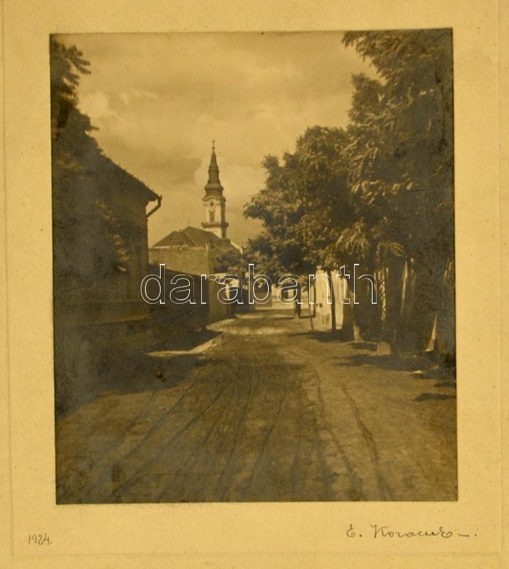 Leírás: 1924 Falusi utcarészlet, kartonra kasírozott, jelzett fotó, 13,5x11,5 cm, karton 31x23 cm