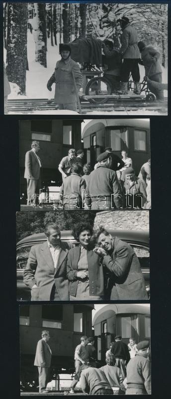 Leírás: 1956, 1959 Filmforgatásokon készült fotók, 4 db, hátoldalon feliratozva, 6x9 és 8x12 cm