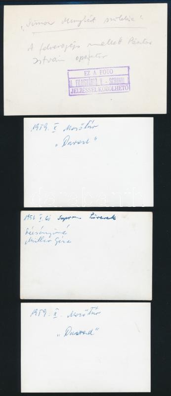 1956, 1959 Filmforgatásokon készült fotók, 4 db, hátoldalon feliratozv... https://www.darabanth.com/hu/294-Gyorsarveres/294.0/Festmeny-mutargy-papirregiseg-egyeb/Foto~200019/1956-1959-Filmforgatasokon-keszult-fotok-4-db-hatoldalon-feliratozva-6x9-es-8x12-cm~II1560337