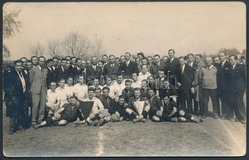 Leírás: Goldberger SE focicsapat csoportképe, fotólap, hátulján feliratozva, 9×14 cm