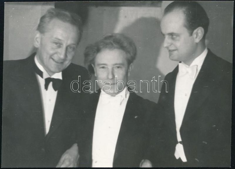 Leírás: Liebmann Béla (1899-?): Szentgyörgyi Albert és Fricsay Ferenc, fotó, hátulján feliratozva, pecséttel jelzett, 6×8,5 cm