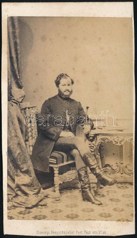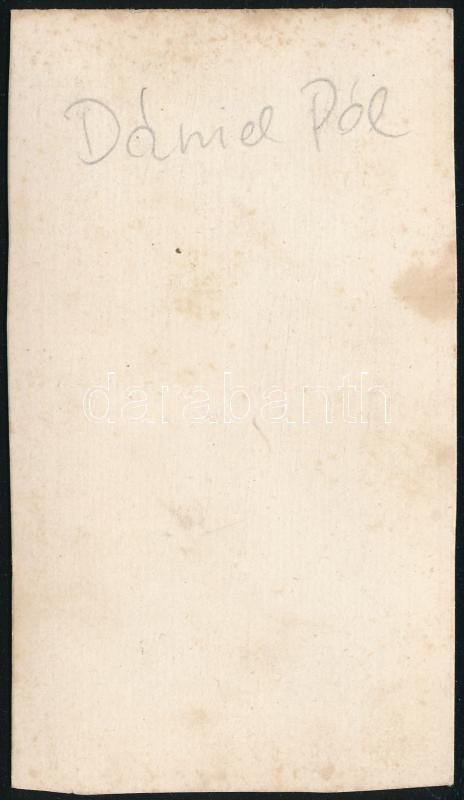 cca 1859 Dániel Pál feliratú, vizitkártya méretű fénykép, Simonyi pesti fényirdájából, felirata átmásolva egy nemesi család vizitkártya albumának lapjáról, 10,5x6 cm