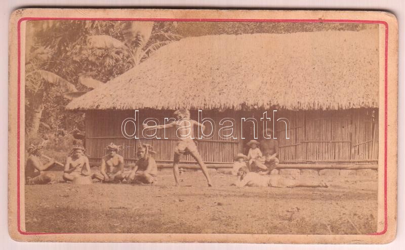 cca 1868 Tahiti, G. Spitz(1845-1898) vintage fotója a bennszülöttekről, vizitkártya méretben, 6x10,5 cm / G. Spitz(1845-1898): Tahiti, vintage photo, 6x10,5 cm