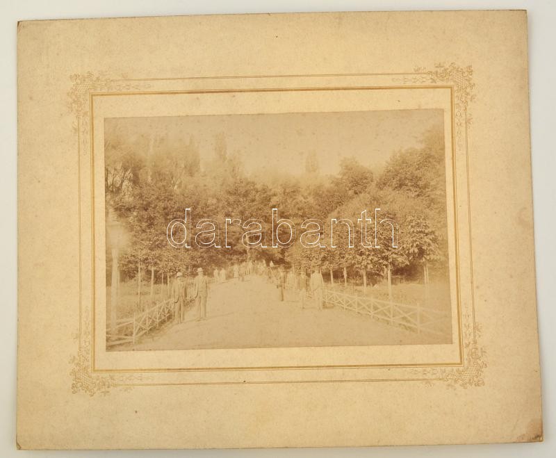 cca 1900 Marosvásárhely, Erzsébet park bejárat, Weinrich Samu fényképész, hátoldalán pecséttel jelzett, kartonra kasírozva, képméret: 13,5 x 20 cm / Targu Mures, park, photo, 13,5 x 20 cm