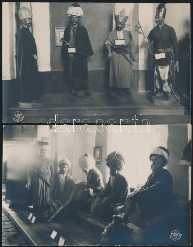 Leírás: cca 1930-1940 Panoptikumi török figurák, 2 db fotólap, 9x14 cm