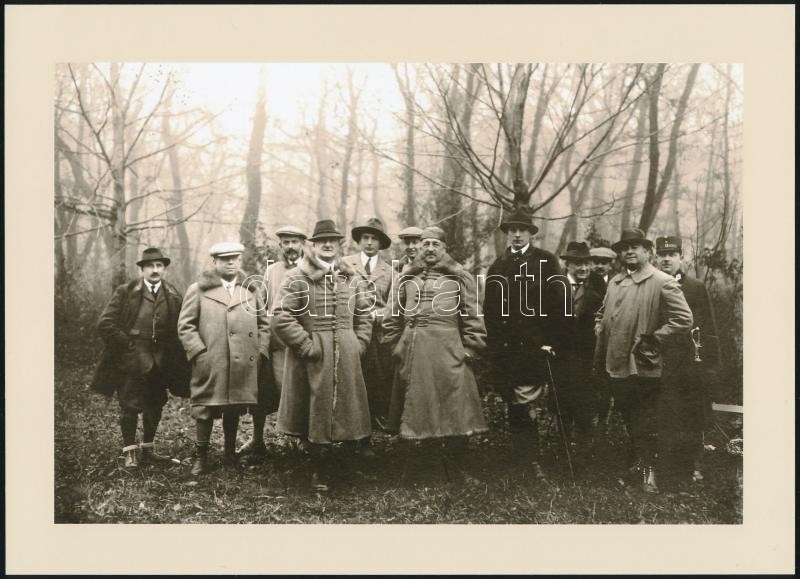 Leírás: cca 1930 Horthy Miklós vadászaton, Esterházy Pál herceg (1901-1989) és társasága vadászaton, modern másolat, 15x21 cm.
