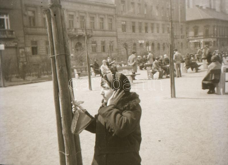 cca 1937 Negatívtartó album, 100 tasakos, benne cca. 99 db szabadon felhasználható, vintage negatív felvétel, sokféle témáról, egy jó szemű fotós hagyatéka, 3x4,5 cm