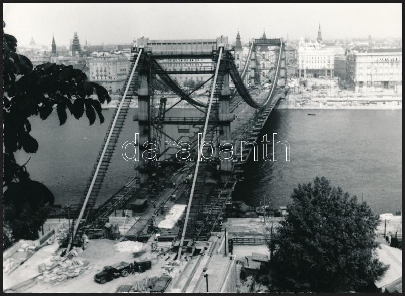 Leírás: cca 1964 Budapest, az épülő Erzsébet híd, 1 db vintage színes dia (6x9 cm) és 1 db vintage fotó, 13x18 cm