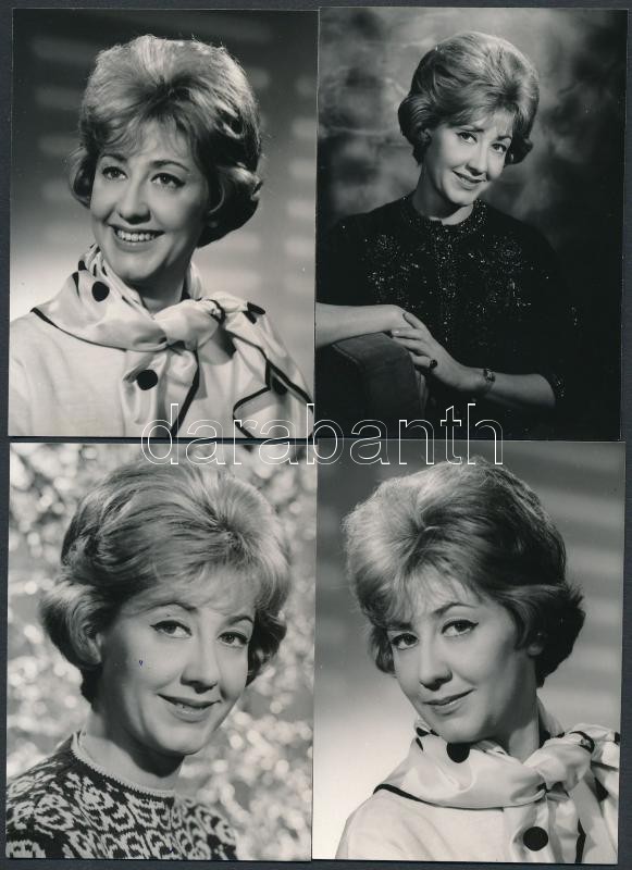 Leírás: cca 1969 Hacser Józsa színésznő, 4 db szabadon felhasználható vintage negatív és az ezekről készült 4 db vintage fénykép, 7x6 cm