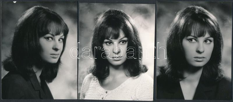 Leírás: cca 1969 Szegedi Erika színésznő, 4 db szabadon felhasználható vintage negatív és az ezekről készült 3 db vintage fénykép, 7x6 cm