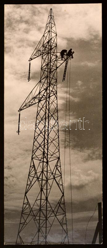 Leírás: cca 1979 Magyar Alfréd: Ég és föld között, feliratozott vintage fotóművészeti alkotás, kasírozva, 39x16 cm