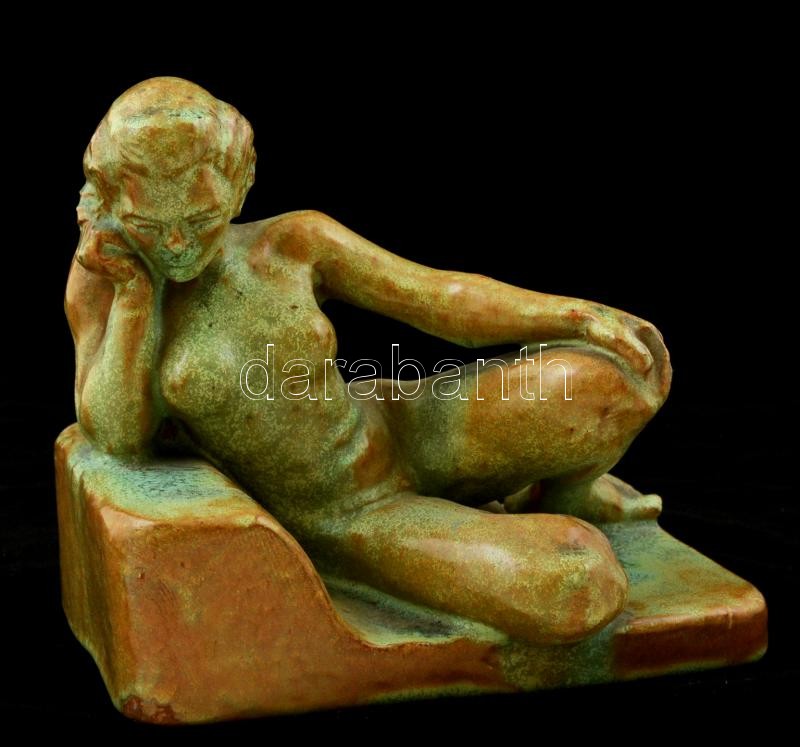 Leírás: Radványi kerámia: Fekvő akt. Mázas kerámia. Jelzett, hibátlan. 19x21 cm