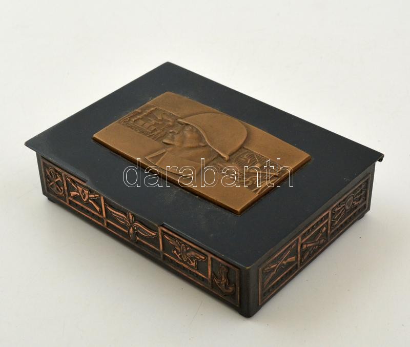 Leírás: "Emlékül a szocialista haza fegyveres szolgálatáért a Magyar Népköztársaság Honvédelmi Miniszterétől" fém doboz domborművel, 9×12×3,5 cm