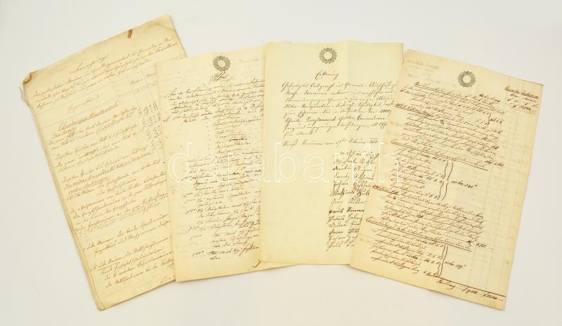 Leírás: 1853 A nezsideri lovaskaszárnya kimutatásai szignettás papíron, 4 db (3 db 15kr szignettás)