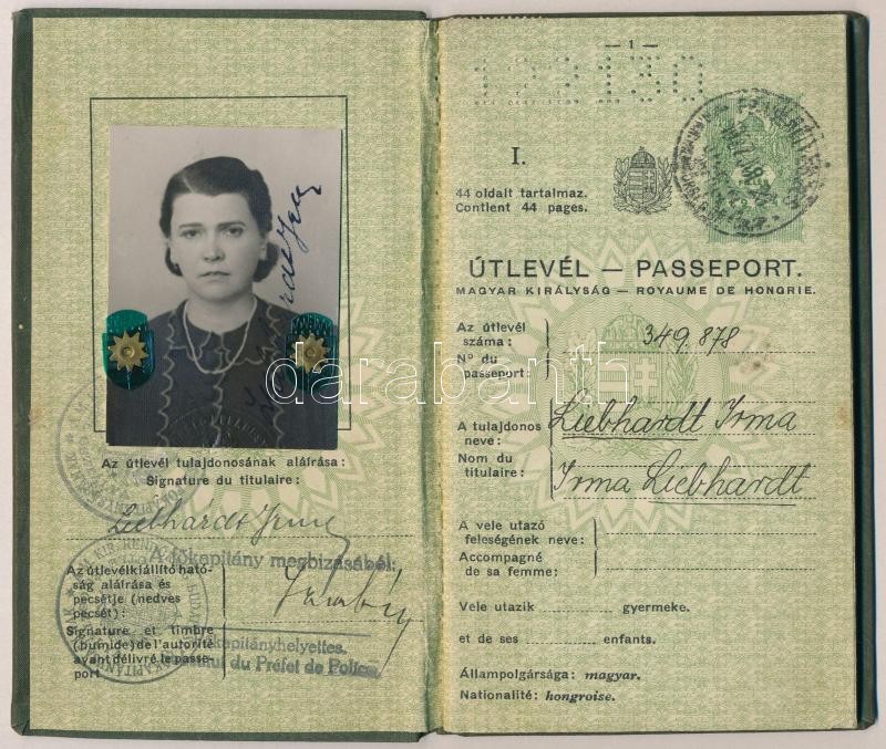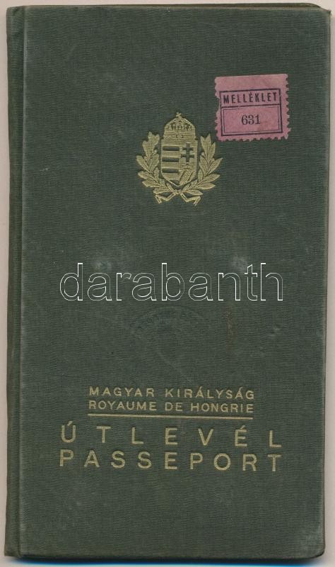 1937 Bp., A Magyar Királyság által kiállított fényképes útlevél / Hung... https://www.darabanth.com/hu/294-Gyorsarveres/294.0/Festmeny-mutargy-papirregiseg-egyeb/Okmanyok~200016/1937-Bp-A-Magyar-Kiralysag-altal-kiallitott-fenykepes-utlevel-Hungarian-passport~II1559254