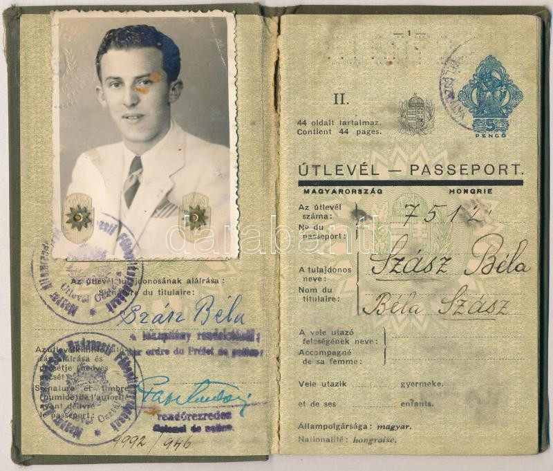 1946 Bp., A Magyar Királyság által kiállított fényképes útlevél / Hung... https://www.darabanth.com/hu/294-Gyorsarveres/294.0/Festmeny-mutargy-papirregiseg-egyeb/Okmanyok~200016/1946-Bp-A-Magyar-Kiralysag-altal-kiallitott-fenykepes-utlevel-Hungarian-passport~II1559249