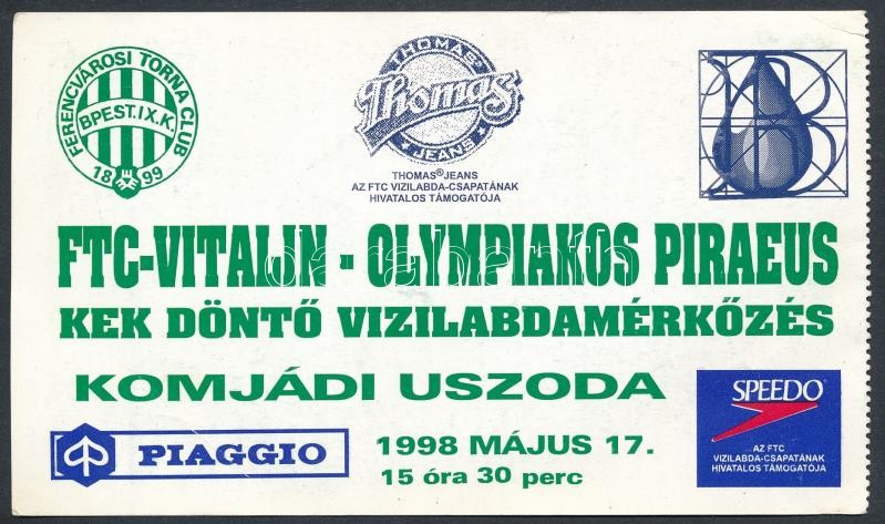 1998 Kezelt belépőjegy az FTC-Vitalin - Olympiakos Piraeus KEK döntő v... https://www.darabanth.com/hu/294-Gyorsarveres/294.0/Festmeny-mutargy-papirregiseg-egyeb/Okmanyok~200016/1998-Kezelt-belepojegy-az-FTC-Vitalin--Olympiakos-Piraeus-KEK-donto-vizilabdamerkozesre~II1558320
