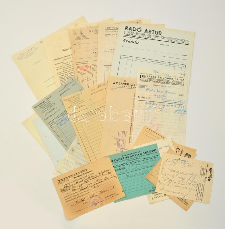 cca 1930-1940 24 db különféle fejléces számla https://www.darabanth.com/hu/294-Gyorsarveres/294.0/Festmeny-mutargy-papirregiseg-egyeb/Okmanyok~200016/cca-1930-1940-24-db-kulonfele-fejleces-szamla~II1562633