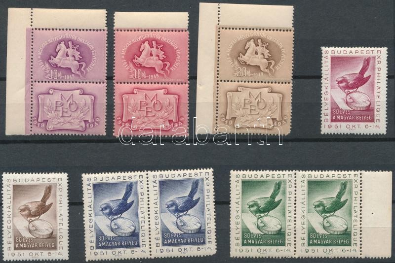 Leírás: 1949-1951 9 db levélzáró, közte szelvényes bélyegek és párok