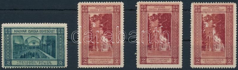 Leírás: Magyar Iskola Egyesület 4 db fürdőket ábrázoló levélzáró (3 egyforma)
