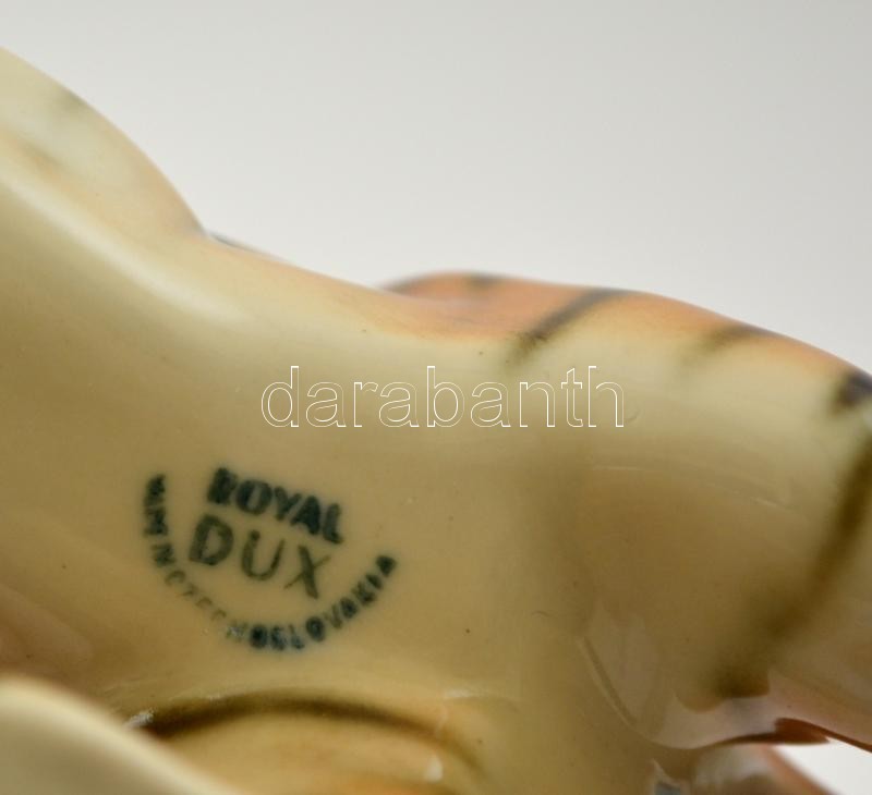 Royal Dux tigris, kézzel festett, jelzett, máz alatti foltokkal, h:18 ... https://www.darabanth.com/hu/294-Gyorsarveres/294.0/Festmeny-mutargy-papirregiseg-egyeb/Porcelan~200007/Royal-Dux-tigris-kezzel-festett-jelzett-maz-alatti-foltokkal-h18-cm-m-8-cm~II1559887