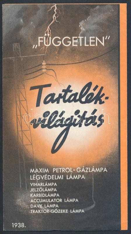 Leírás: 1938 Maxim petrolgázlámpák reklám prospektus