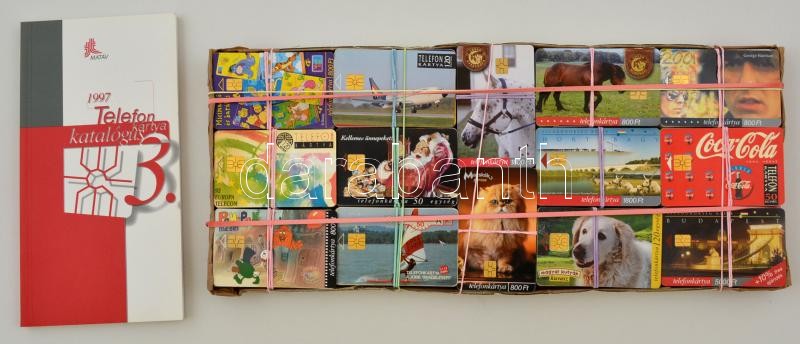 Leírás: Magyar telefonkártya gyűjtemény, különféle kártyák, közte ritka, különleges darabokkal is, összesen 350 db + 3. Matáv telefonkártya-katalógus 1997