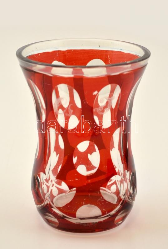 Leírás: 1913 emlék pohár, két rétegű, jelzés nélkül, apró karcolássokkal, hámozott és csiszolt, csorba nélkül, m:11,5 cm