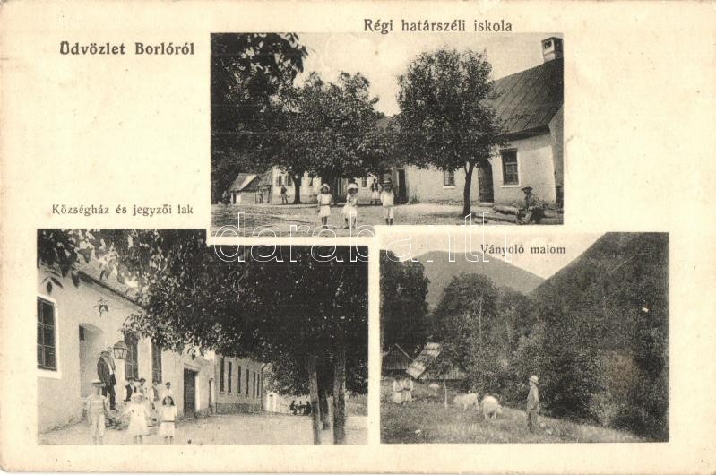 Borló, Borlova; Régi határszéli iskola, Községház, jegyzői lak, Ványol... https://www.darabanth.com/hu/294-Gyorsarveres/294.0/Kepeslapok/Erdely~100006/Borlo-Borlova-Regi-hatarszeli-iskola-Kozseghaz-jegyzoi-lak-Vanyolo-malom-school-to~II1562315