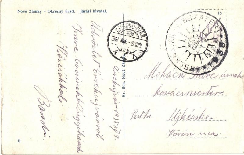 Érsekújvár, Nové Zamky; Járási hivatal / Okresny úrad / county hall "1... https://www.darabanth.com/hu/294-Gyorsarveres/294.0/Kepeslapok/Felvidek~100007/Ersekujvar-Nove-Zamky-Jarasi-hivatal-Okresny-urad-county-hall-1938-Ersekujvar-vissz~II1561612