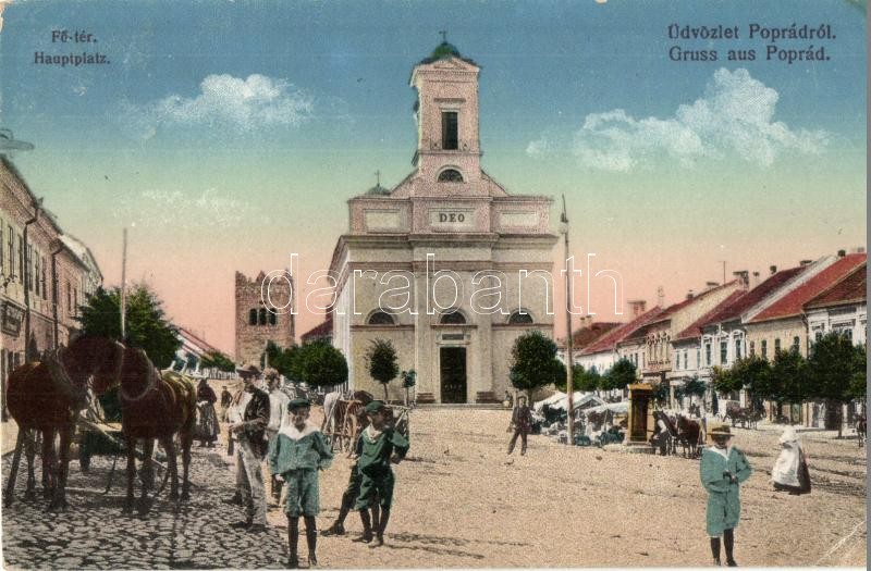 Poprád (Tátra); Hauptplatz / Fő tér, templom, piac / main square, chur... https://www.darabanth.com/hu/294-Gyorsarveres/294.0/Kepeslapok/Felvidek~100007/Poprad-Tatra-Hauptplatz-Fo-ter-templom-piac-main-square-church-market-EK~II1561773