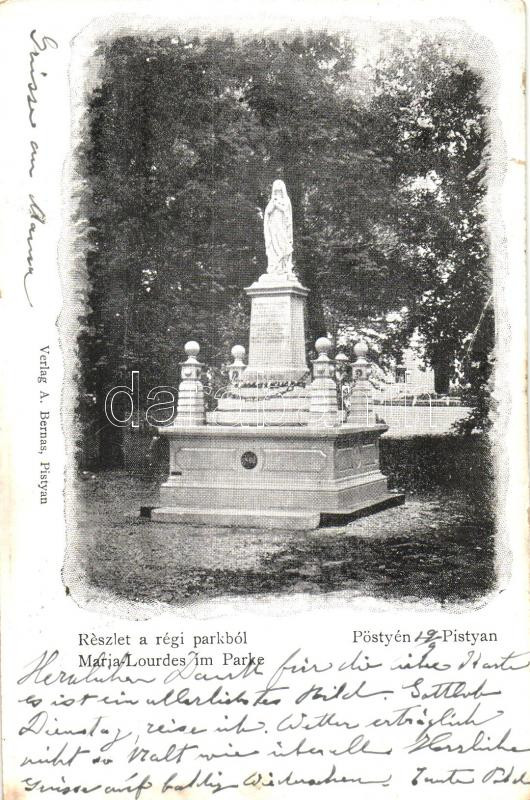 Pöstyén, Piestany; Régi park, Hála emlék, kiadja A. benas / park, stat... https://www.darabanth.com/hu/294-Gyorsarveres/294.0/Kepeslapok/Felvidek~100007/Postyen-Piestany-Regi-park-Hala-emlek-kiadja-A-benas-park-statue-fa~II1438553