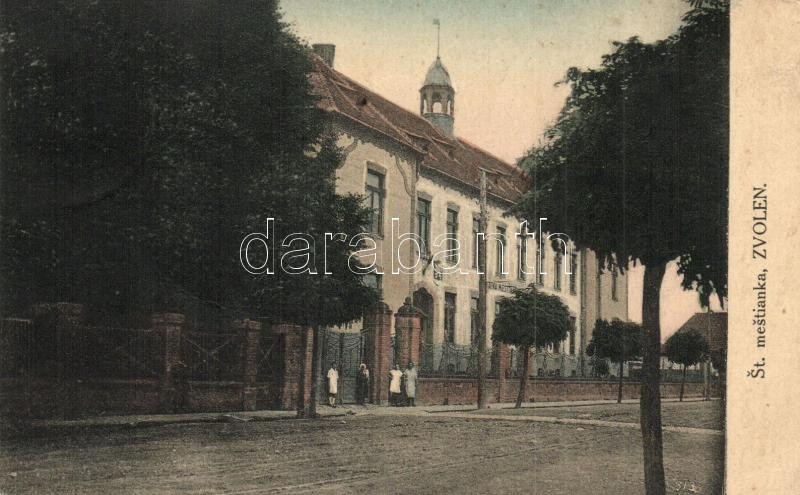 Zólyom, Zvolen; St. mestianka / iskola / school (EK) https://www.darabanth.com/hu/294-Gyorsarveres/294.0/Kepeslapok/Felvidek~100007/Zolyom-Zvolen-St-mestianka-iskola-school-EK~II1558842