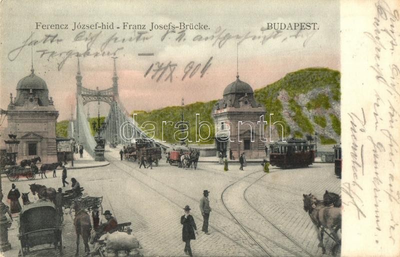 Budapest, Ferenc József híd, villamosok (EK) https://www.darabanth.com/hu/294-Gyorsarveres/294.0/Kepeslapok/Magyarorszag~100005/Budapest-Ferenc-Jozsef-hid-villamosok-EK~II1563134