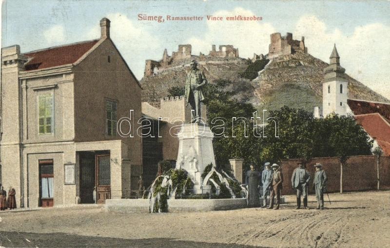 Leírás: Sümeg, Ramasetter Vince emlékszobra, várromok (EK)