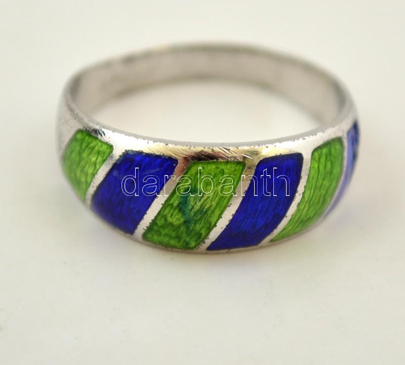 Leírás: Ezüst(Ag) kék és zöld zománcberakással díszített gyűrű, jelzett, méret: 57, nettó: 3,6 g